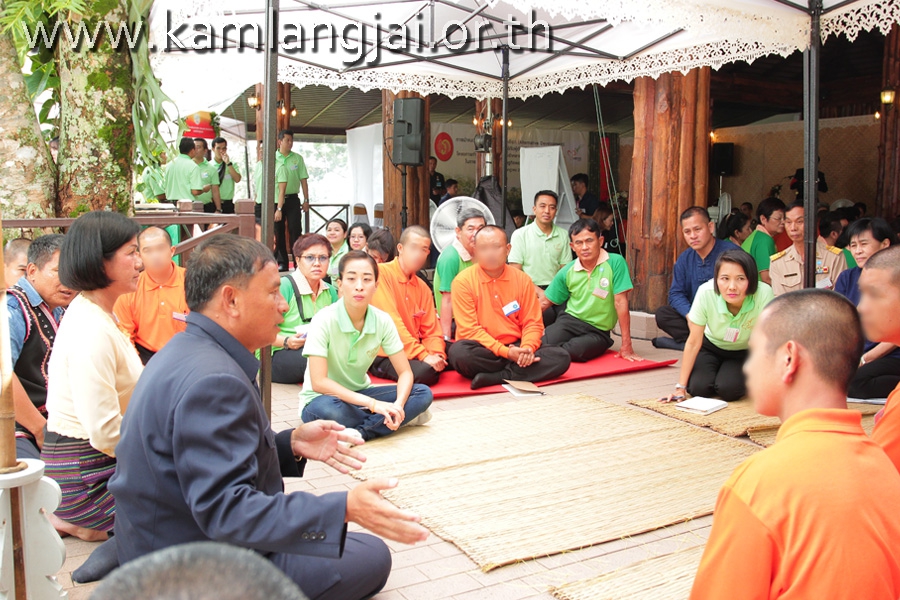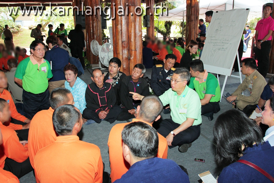 ในกิจกรรมดังกล่าว มีการแบ่งกลุ่ม 4 ฐานและให้ผู้ต้องขังได้เรียนรู้จากวิทยากรของดอยตุงและเครือข่ายภาครัฐและเอกชนที่จะมาช่วยดูแลเมื่อพ้นโทษ ซึ่งพระเจ้าหลานเธอฯ ได้เข้าร่วมกิจกรรมในทุกกลุ่ม จากนั้นผู้แทนของผู้ต้องขัง 3 รายได้กล่าวสะท้อนความรู้สึกของตนเองต่อกิจกรรมนี้ ต่อพระเจ้าหลานเธอฯ ซึ่งมีผู้ต้องขังรายที่หนึ่ง กล่าวได้อย่างประทับใจตอนหนึ่งว่า “ดีใจที่ได้เข้าเฝ้า แต่ก็อดรู้สึกเกร็งๆ ไม่ได้ และขอให้คำมั่นสัญญาว่าจะไม่ทำให้เสื้อสีส้ม (สีสัญลักษณ์โครงการกำลังใจฯ) แปดเปื้อน จะนำสิ่งที่ได้เรียนรู้จากโครงการกำลังใจฯ ตลอดจนกำลังใจจากพระองค์ท่าน ไปปรับใช้ในการดำเนินชีวิต”