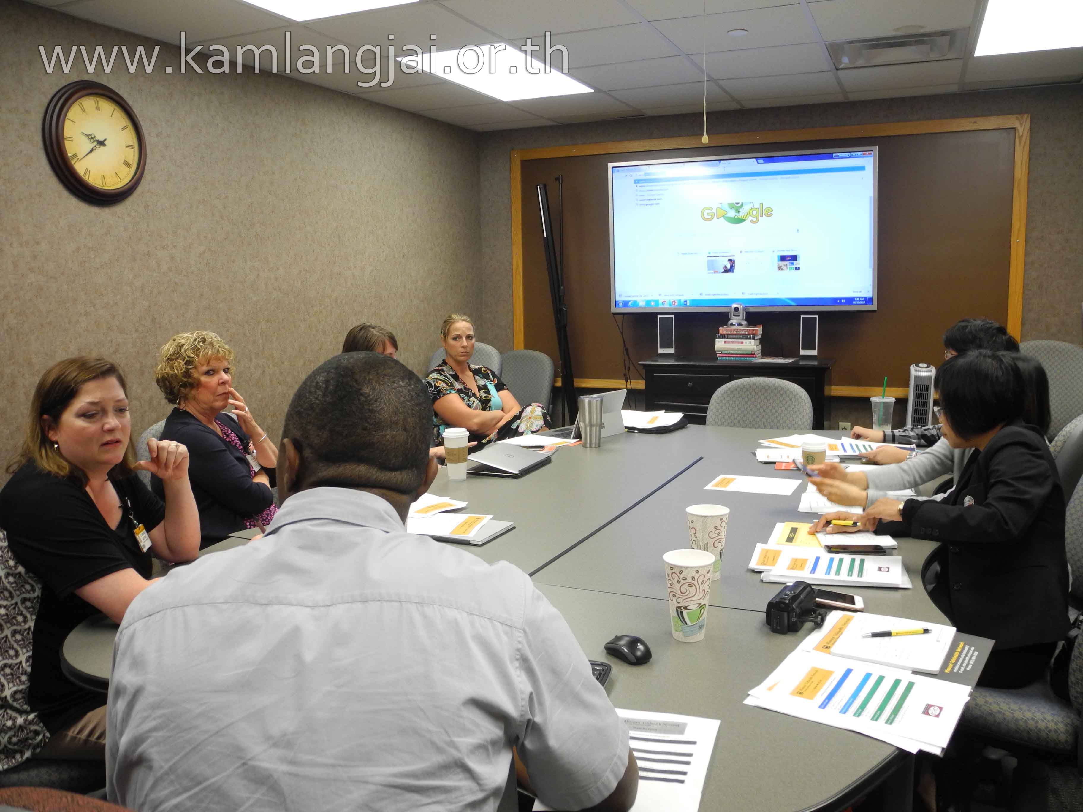 สำหรับวันที่ 14 มิถุนายน 2560 ทีมงานจากประเทศไทย ได้ทำการศึกษาตัวอย่างการพัฒนาหลักสูตร ตัวอย่างการออกแบบแบบฟอร์มสำหรับกรอกเอกสารผู้ป่วยโดย Hub จากนั้นเป็นการนำเสนอตัวอย่างการคัดเลือกเพื่อนผู้ต้องขังในเรือนจำ ฝึกฝนให้เป็น Hub (Prison Peer Education) ณ เรือนจำนิวเม็กซิโก จากนั้น Mirna Becevic, PhD. แพทย์ประจำ Health Care, University of Missouri Health Care บรรยายถึงการประเมินความคุ้มค่าจากการใช้ ECHO ในทางการแพทย์ ต่อมาในช่วงบ่าย ได้ตั้งประเด็นคำถามและไขข้อข้องใจจากนักจิตวิทยา Tiffany Sanford-Martens ซึ่งทำงานอยู่ที่ South Providence Adult Psychaitry Clinic เกี่ยวกับการใช้ ECHO ในด้านจิตวิทยา ช่วงท้ายการเข้าร่วมประชุมด้วย ดร.นพ.ชัยสิริ อังกุระวรานนท์ และ ผศ.พญ.วิชุดา จิรพรเจริญ ร่างกลยุทธ์การทำงานกับระบบ ECHO ในประเทศไทยโดยกำหนดวัตถุประสงค์ (manage behavioral health issues) แผนการทำงานในมิติต่างๆ ที่ต้องการ (session) กลุ่มเป้าหมาย (target audience) และปิดท้ายด้วยการทดลองโปรแกรม ZOOM สำหรับระบบ ECHO นับว่าเป็นอีกหนึ่งก้าวย่างของความพยายามที่จะนำระบบโทรเวชกรรมมาปรับใช้ในเรือนจำ ซึ่งโครงการกำลังใจในพระดำริฯ และศูนย์วาการสารเสพติดจะนำข้อมูลที่ได้จากการเรียนรู้ครั้งนี้ ไปศึกษาและพัฒนาเพื่อนำไปสู่ทางเลือกที่ดี คุ้มค่า และเหมาะสมต่อผู้ต้องขังมากที่สุด
